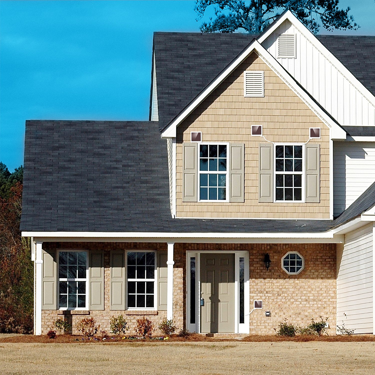 *Easy to Install*:The LED light can be installed on smooth surface easily with the coming 4 stickers and at the back of our solar panel owns a hole available for hanging on the screws(Included).(Please install the solar panel in the place where it can directly absorb the sunlight.)
